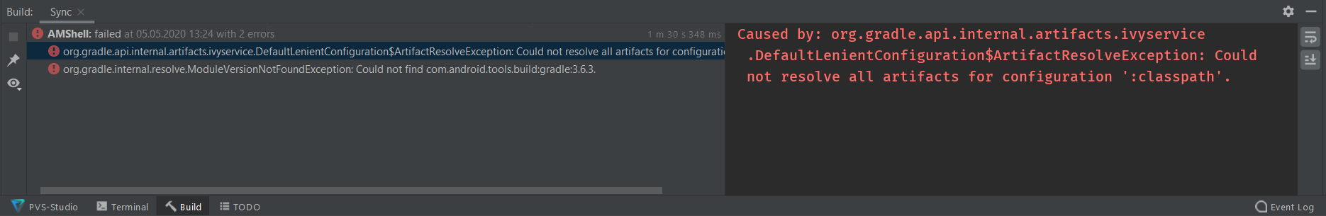 После того, как отработал Gradle, вы увидите следующие сообщения об ошибках: